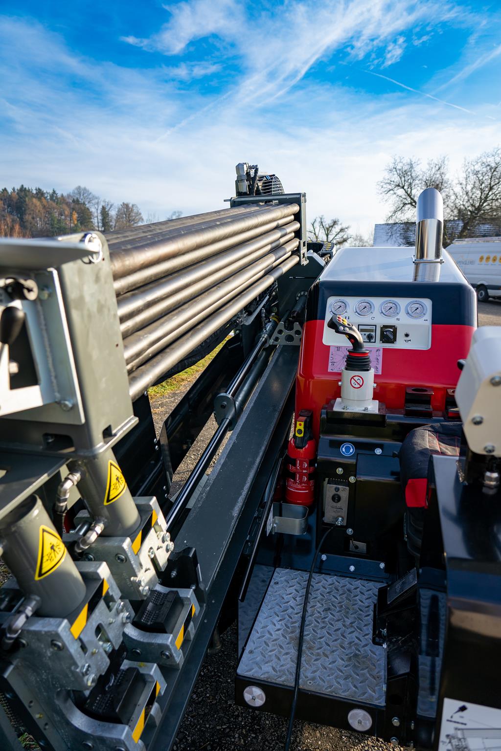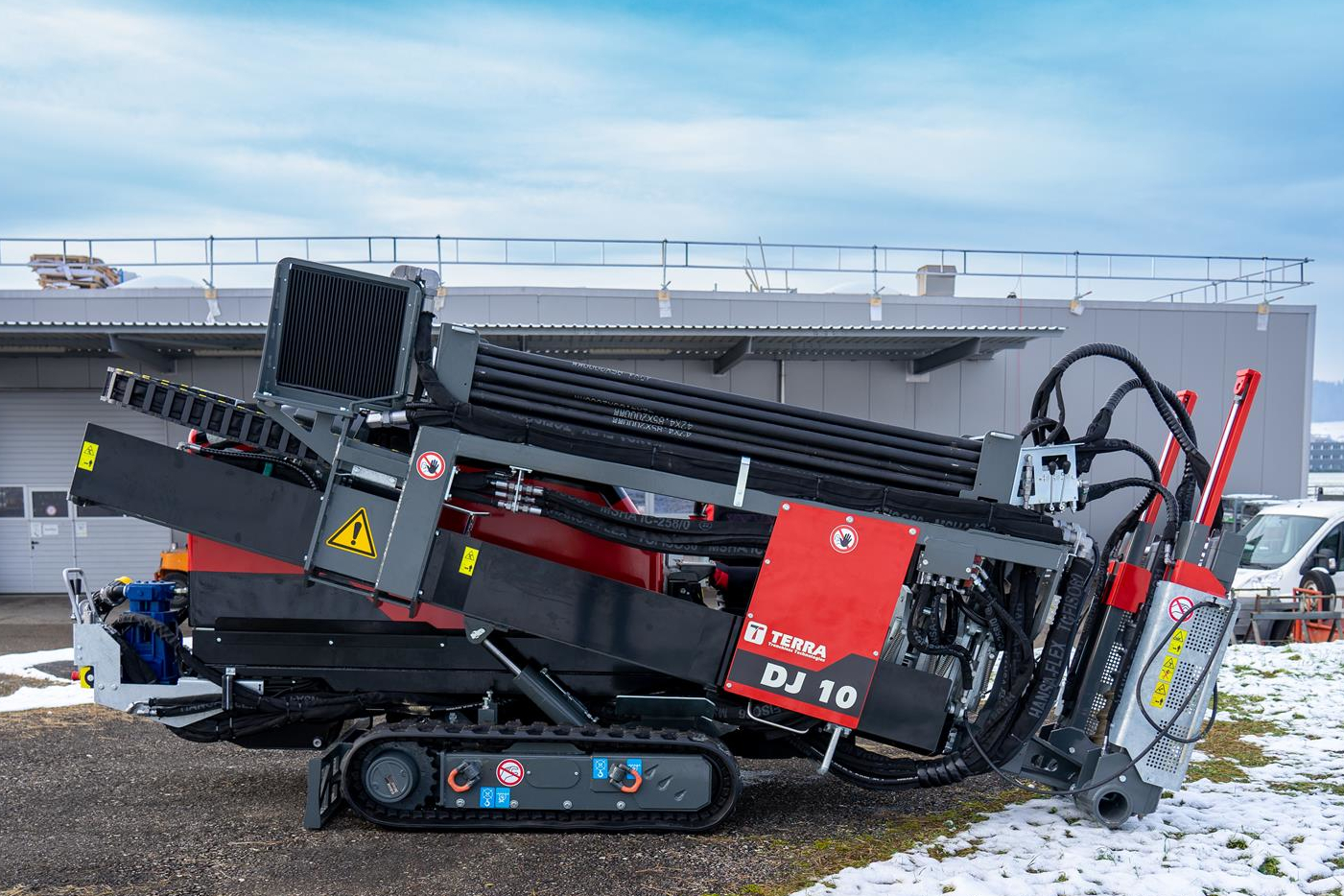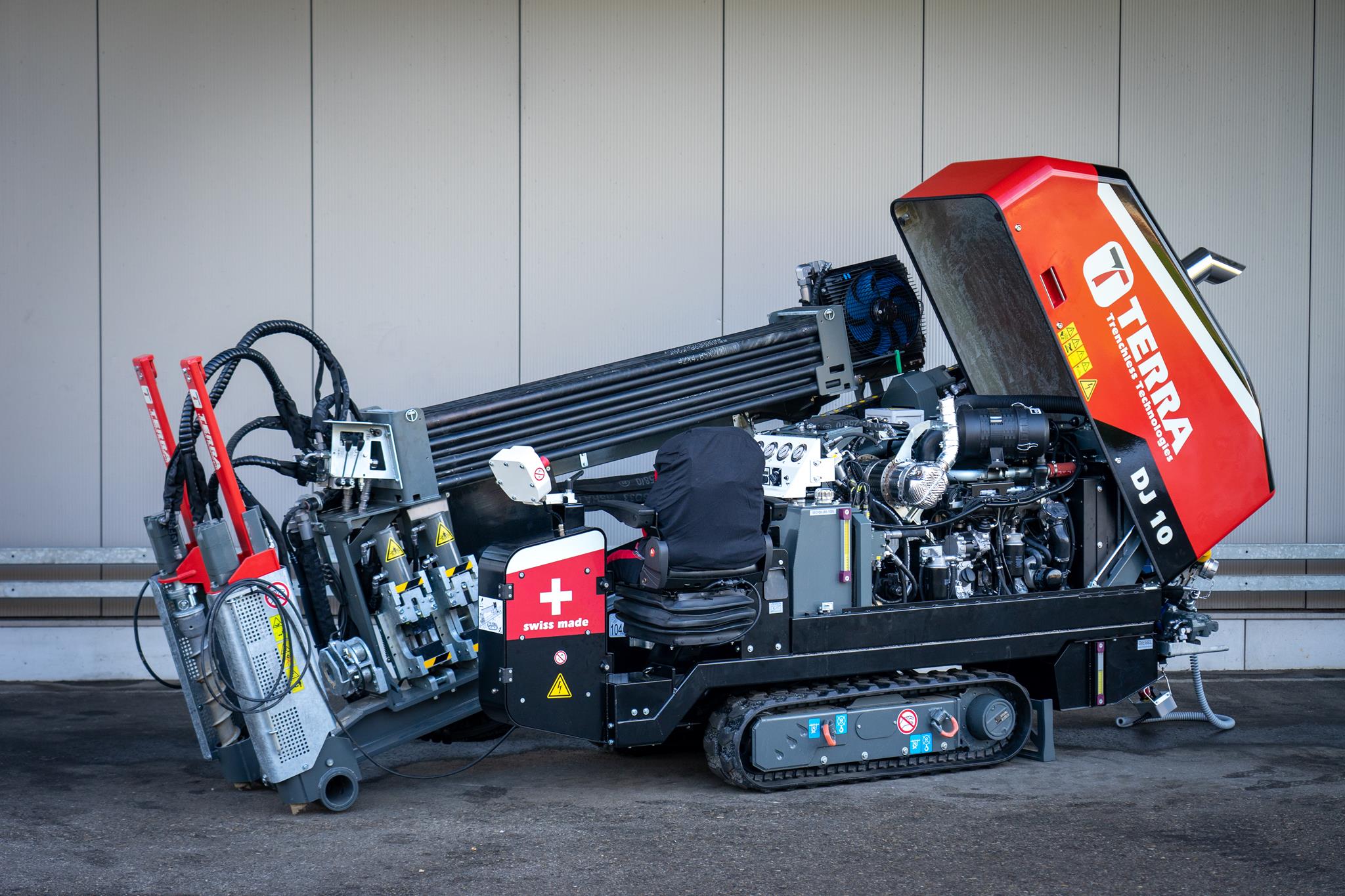 Equipado con un motor diésel HATZ de 75 HP (nivel 5), el TERRA-JET DJ 10 ofrece hasta 4,2 toneladas de potencia de tracción y empuje, así como 1.800 Nm. de par a plena rotación en la barra de perforación de 200 rpm. Con su reducido nivel de ruido y consumo de Diesel, el equipo es ideal para zonas urbanas con espacios reducidos. El equipo también tiene una pequeña huella de CO2 y un rápido tiempo de instalación.