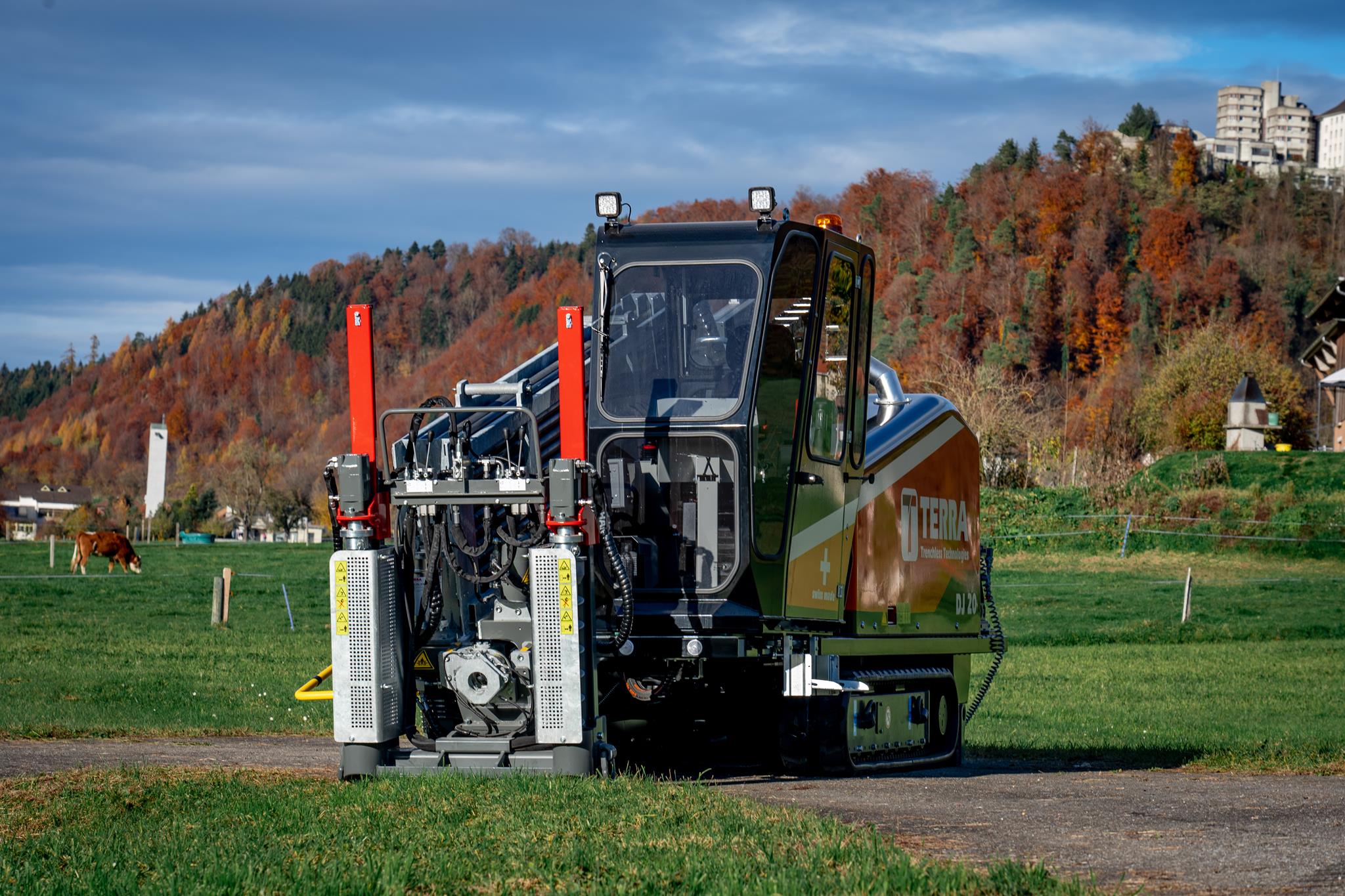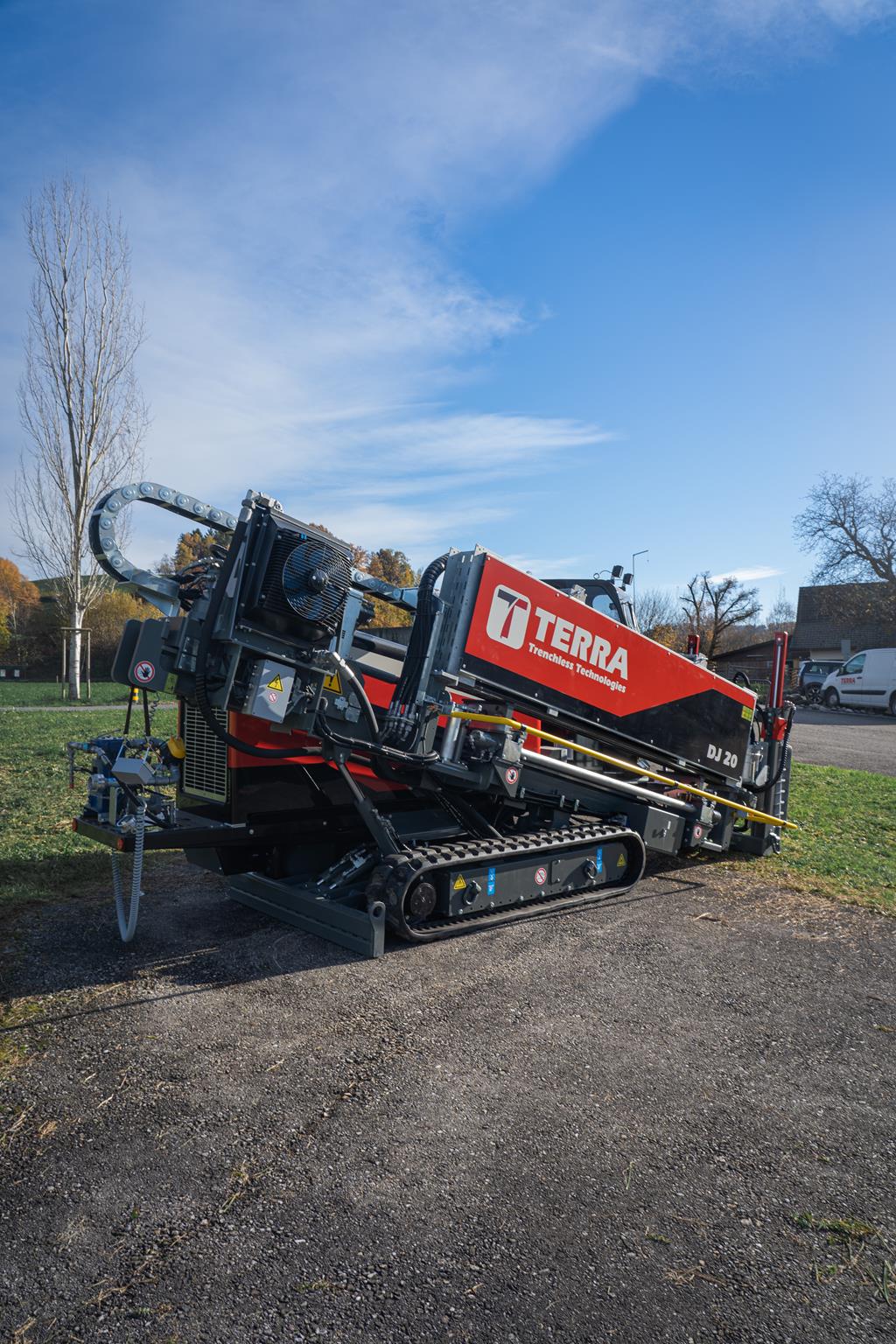 Equipado con un motor diésel HATZ de 75 HP (Stage 5), el TERRA-JET DJ 20 ofrece hasta 9 toneladas de potencia de tracción y empuje, 2.840 Nm de par y una velocidad máxima de 228 rpm en la barra de perforación.