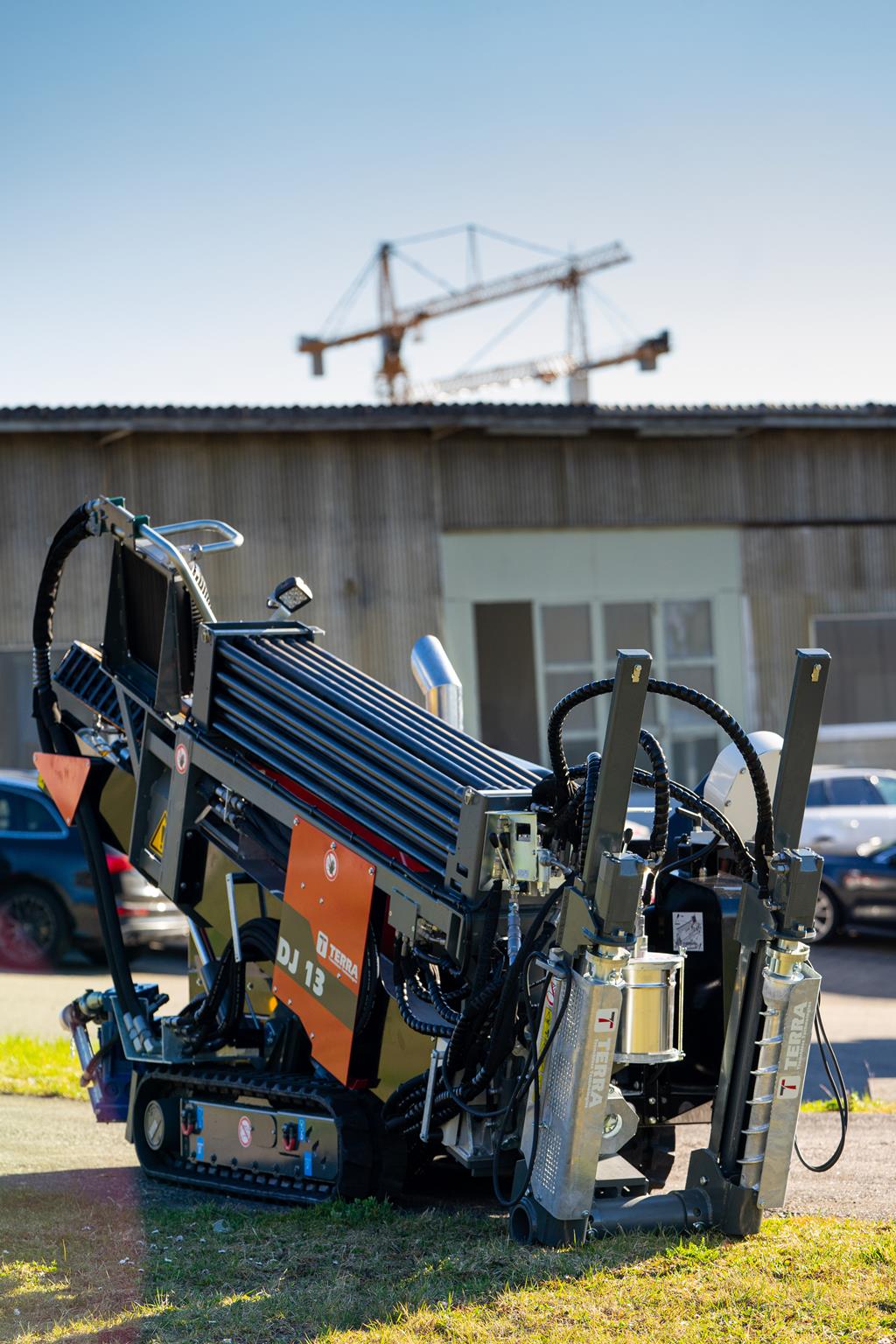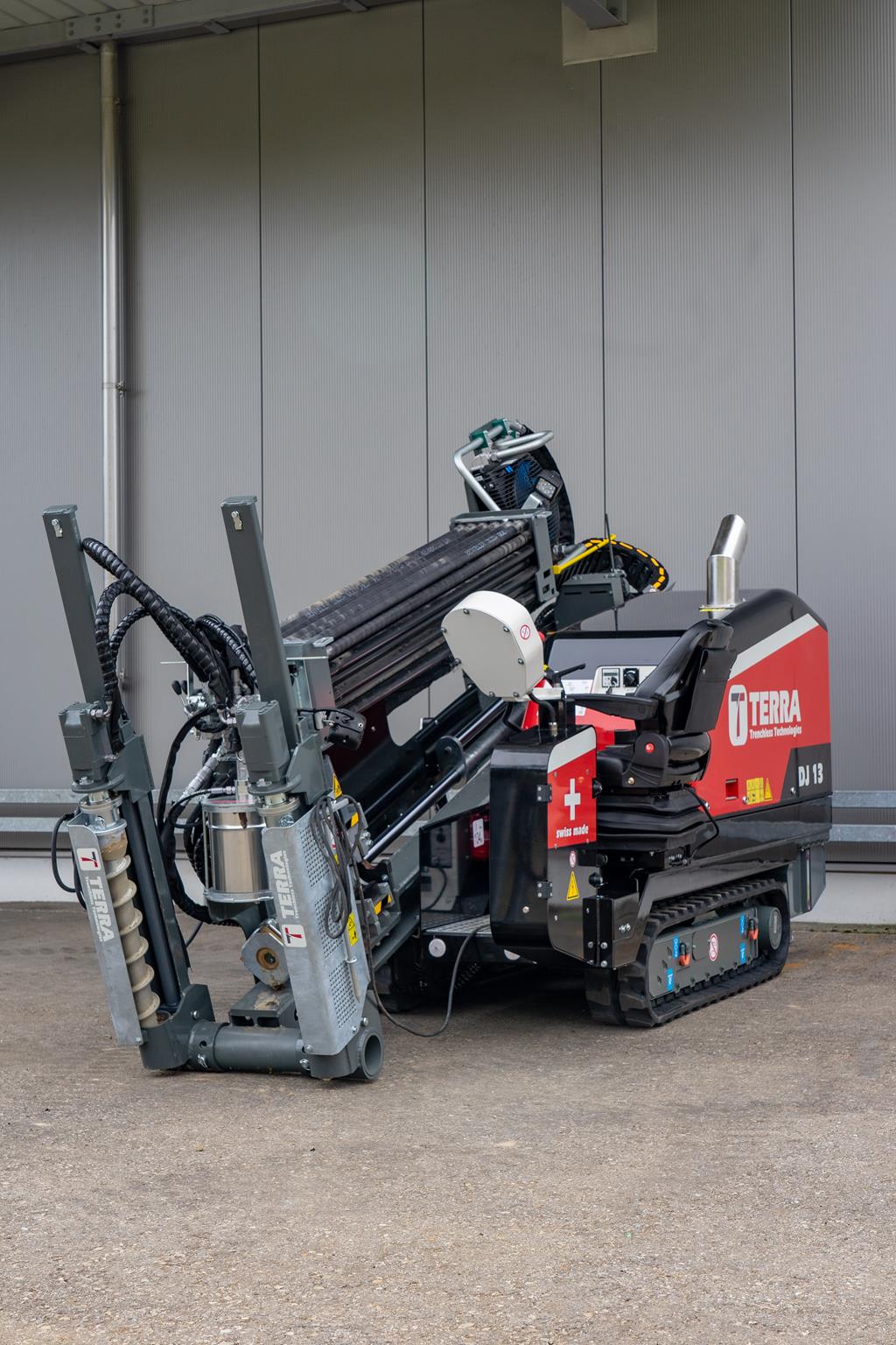 Impulsada con un potente motor diésel HATZ de 75 HP. (nivel 5), el TERRA-JET DJ 13 ofrece hasta 6 toneladas de potencia de tracción y empuje, 2.300 Nm de par y una velocidad máxima de 225 rpm. en la barra de perforación.