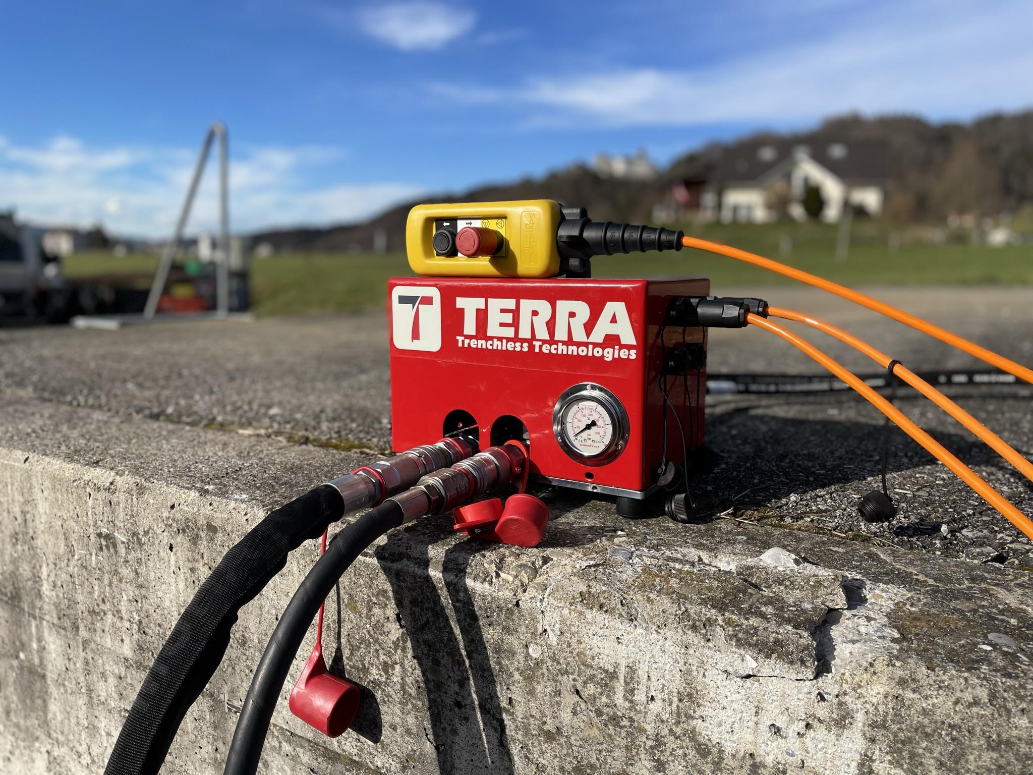As a typical entry-level machine in the trenchless pipeline construction, the TERRA-JACK 200 can be used successfully for directional pipe laying for house connections or short road crossings. It has a thrust force of 140 kN (14 t) and a pulling force of 200 kN (20 t).