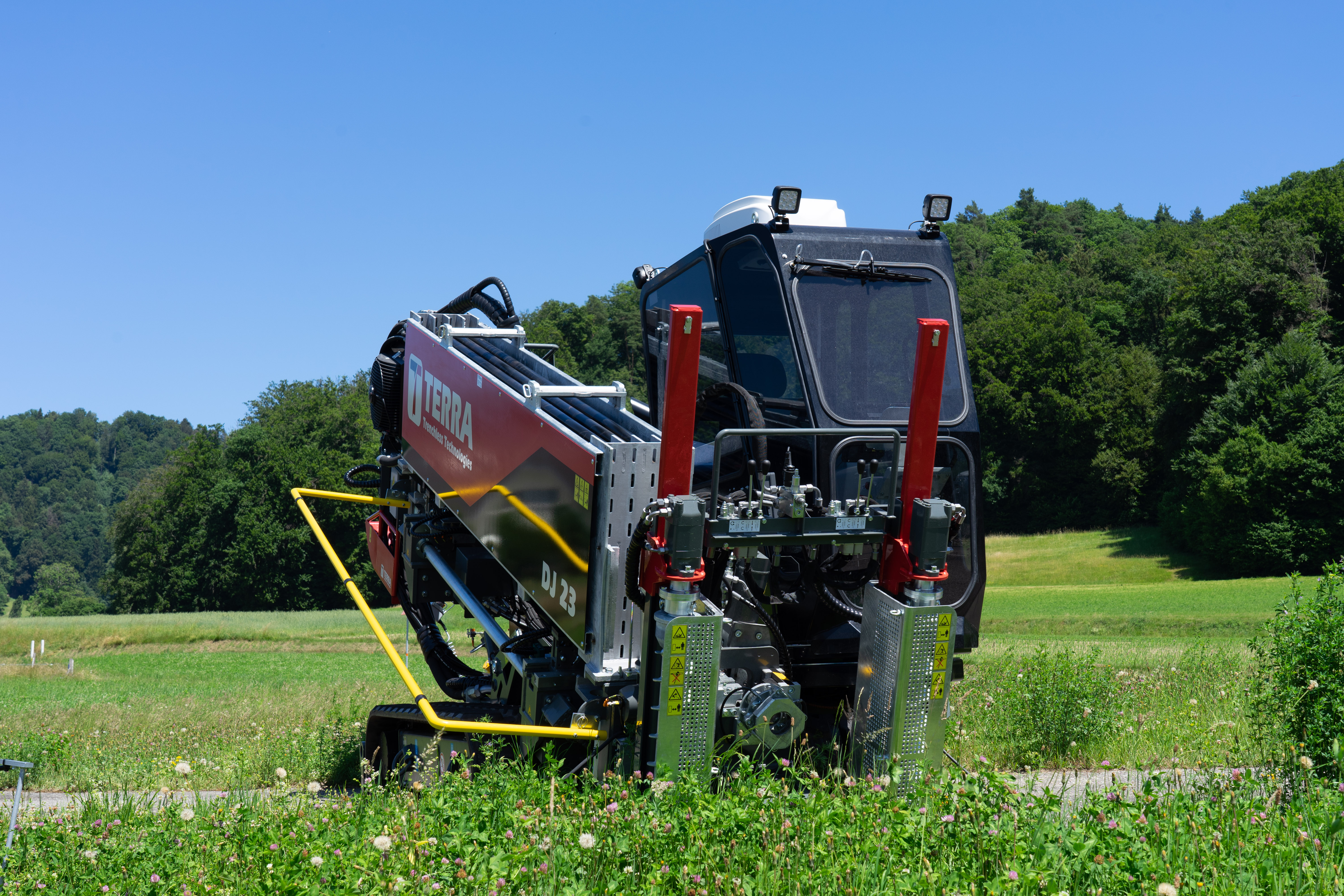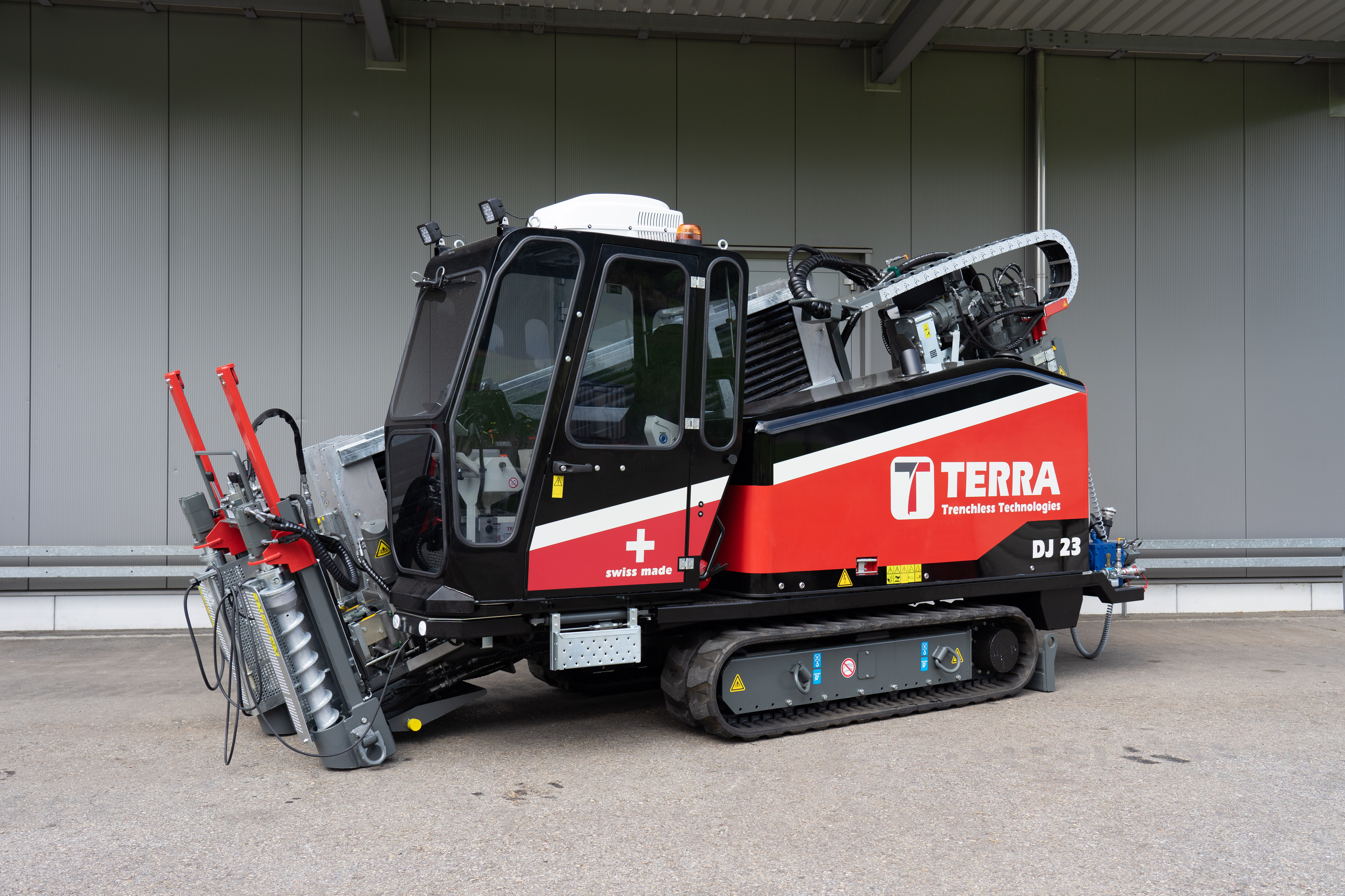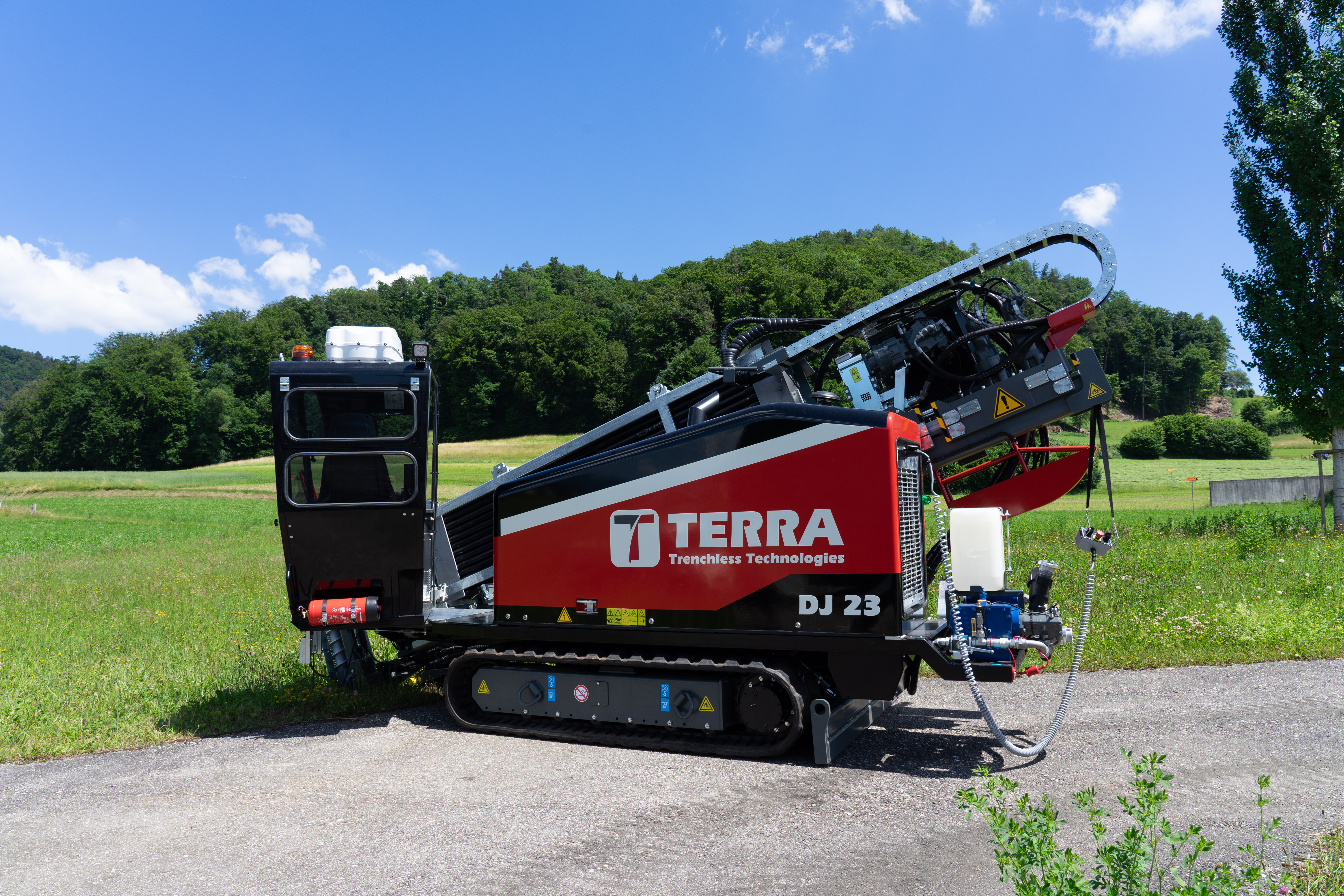 Equipado con un motor diésel DEUTZ de 101 HP (Euro nivel 5), el TERRA-JET DJ 23 ofrece hasta 11 toneladas de potencia de tracción y empuje, 3.100 Nm. de par y una velocidad máxima de 284 rpm en la barra de perforación.