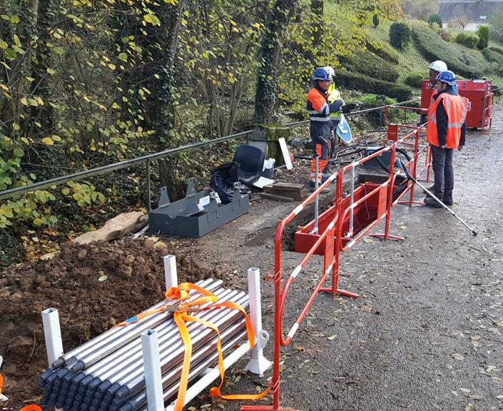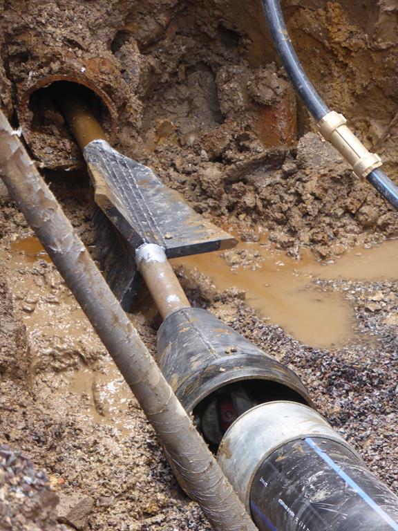 - Equipo de quebrantado hidráulico para la renovación de tuberías de gas, aqua potable y aguas servidas. Corte y quebrantado sin problemas de gres plástico, avero, fundición gris o fundición dúctil de ø 80 mm - 300 mm para que luego, se puede proceder a la introducción de nuevas tuberías de PE de alta densidad con diámetros exteriores de hasta 355 mm.