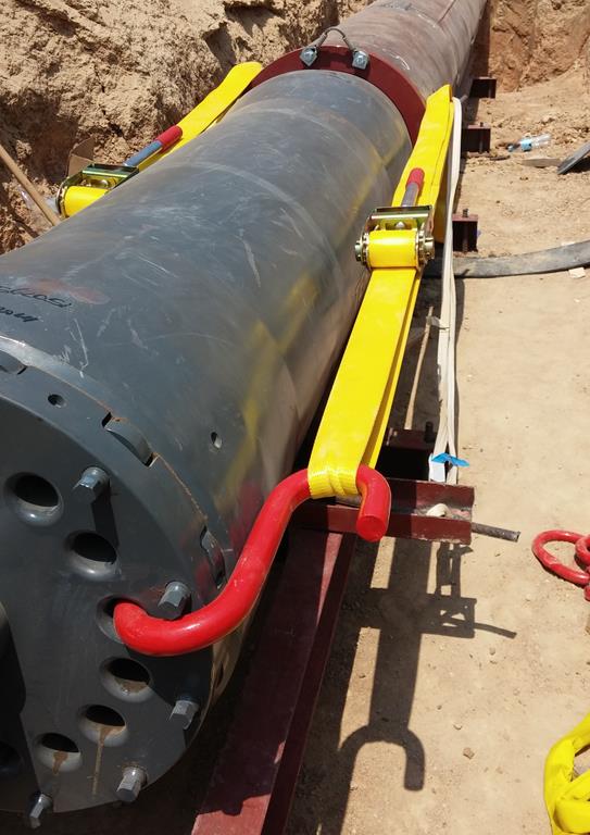 During the launching procedure tensioning accessories for tensioning the TERRA‐Ram against the steel pipe are neccessary. The chain is used to connect the steel pipe with the ratchet tensioner.